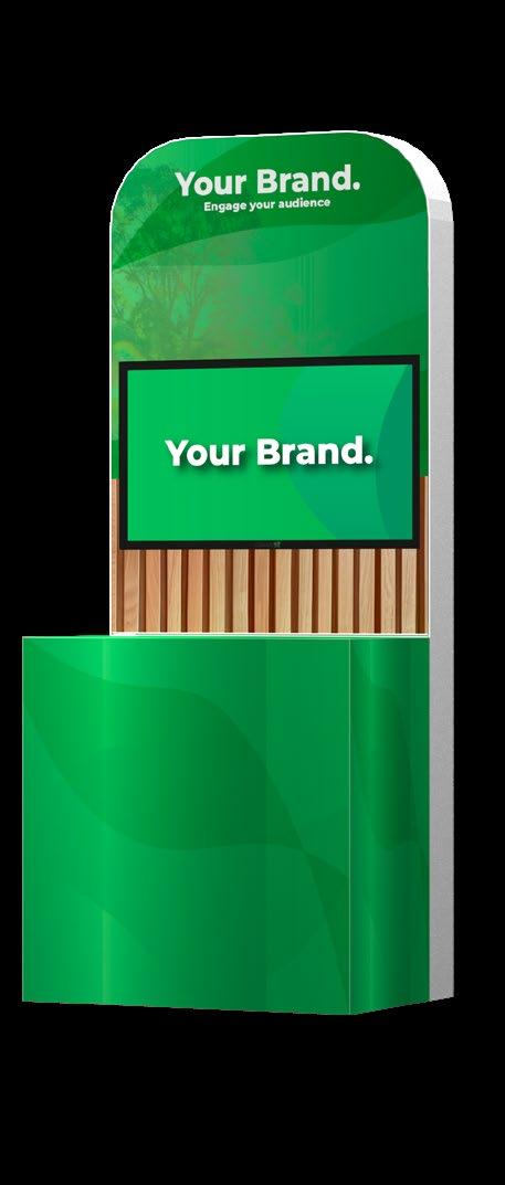 With sustainable, reusable frames and eco-friendly signage substrates, Meta Hub offers a sleek design finish, with optional storage solutions and contemporary curves exuding sophistication and modernity. The seamless recessed screen or integrated LED Strip illuminates the hub to deliver a brand experience that’s beyond the everyday.