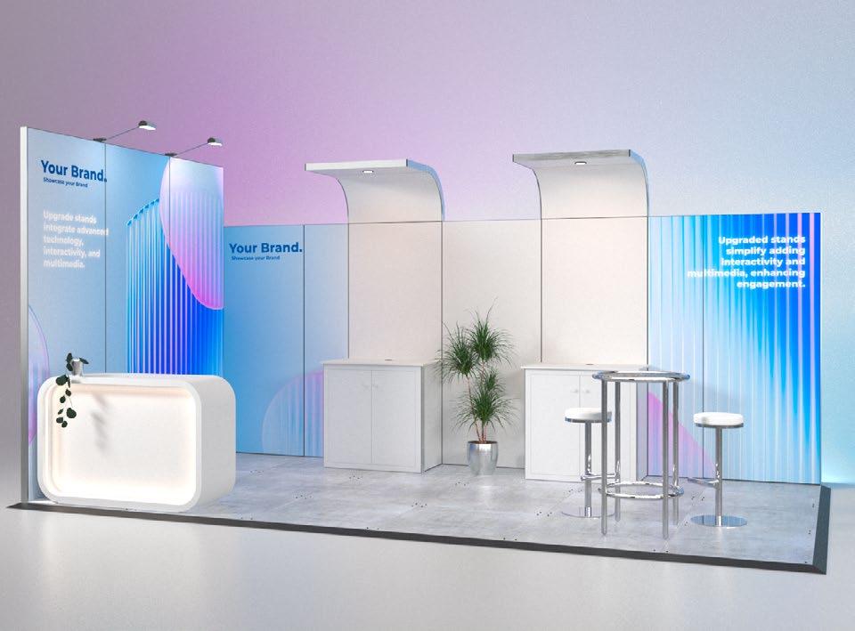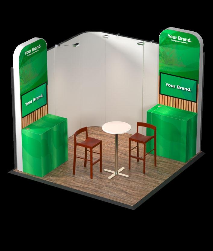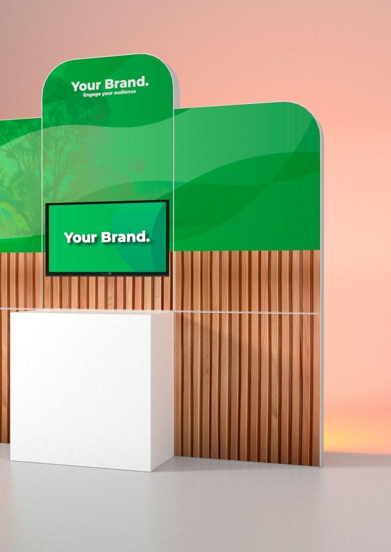 Now you have the freedom to choose fluid curves with a contemporary open feel - or integrate with our Aspen curved panels to define your space with a touch of flair. Dial up your exhibition presence by including a curved fascia sign that boldly highlights your brand identity.