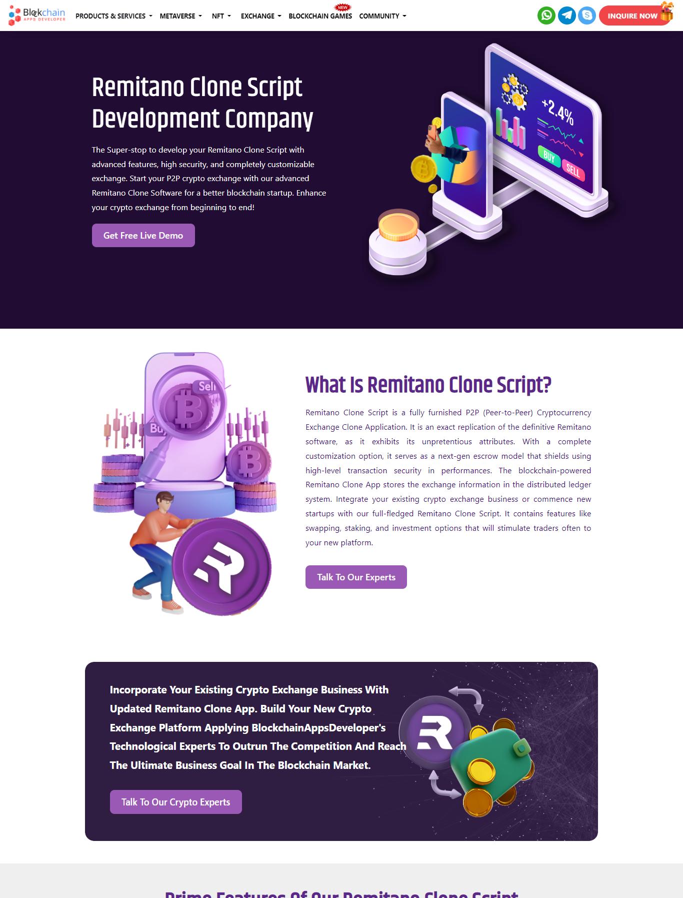 The Super-stop to develop your Remitano Clone Script with advanced features, high security, and completely customizable exchange. Start your P2P crypto exchange with our advanced Remitano Clone Software for a better blockchain startup. Enhance your crypto exchange from beginning to end!