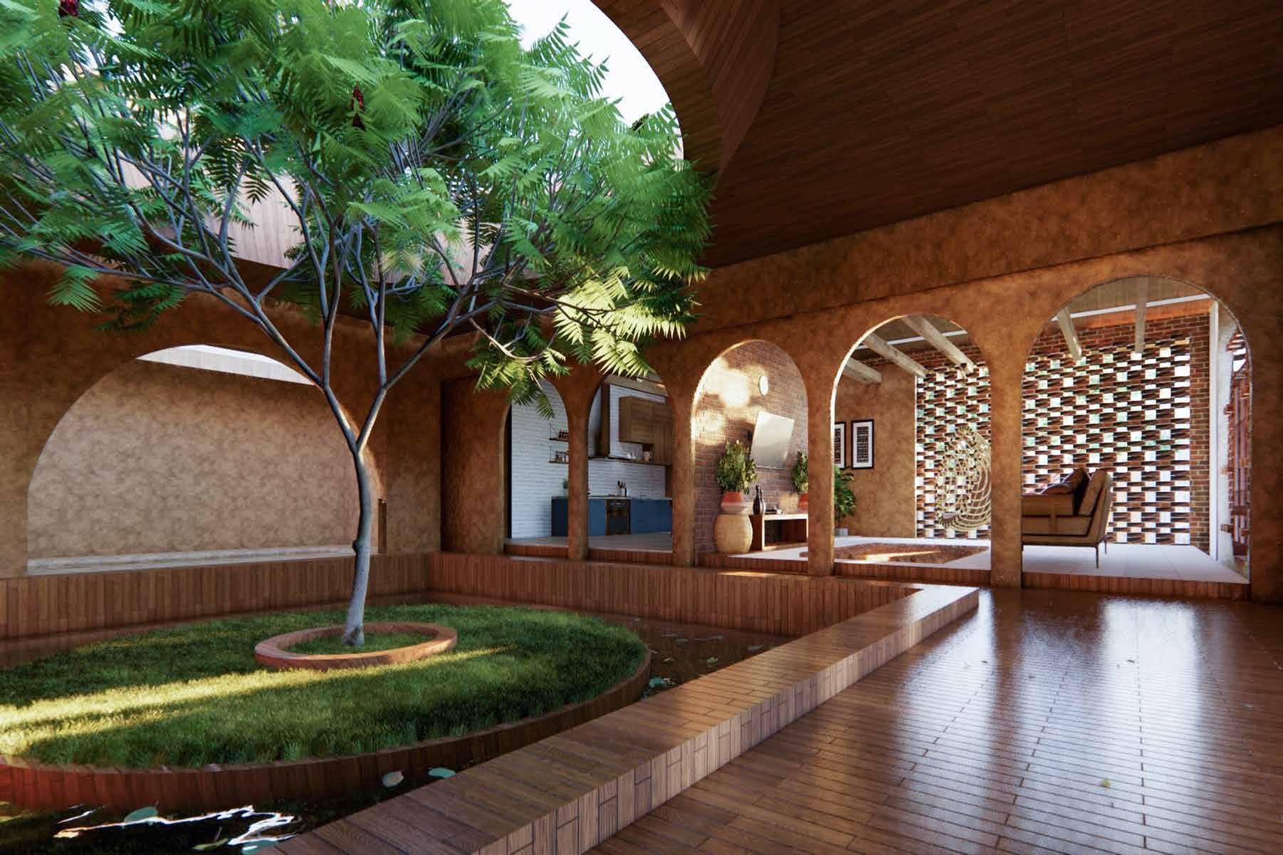 Aranyashala is a thoughtfully designed play school that aims to foster a deep connection between children and the natural world. The architectural concept revolves around harmonious nature-blended design and the principle of openness. Inspired by the beauty of forests, the design integrates natural elements and organic shapes to create a nurturing environment. The building features courtyard open areas, allowing ample sunlight and fresh air to flow in. Play areas are seamlessly connected with outdoor spaces, encouraging children to explore, learn, and develop a love for nature from an early age. Aranyashala embraces the idea of sustainability and offers a sanctuary where the upcoming generation can forge a strong attachment with the natural world.