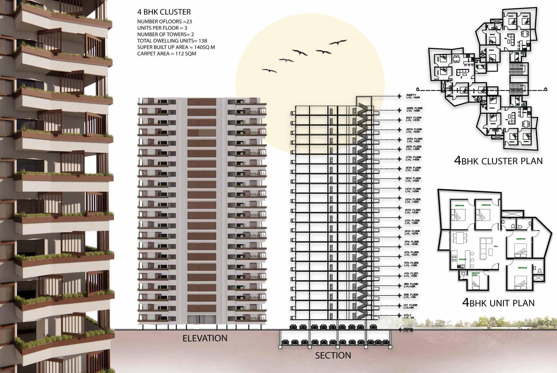 The Zenith is a visionary group housing project that exemplifies the harmony of tranquility and modern living. Rooted in the pursuit of serenity, the design strives to create an environment that fosters a sense of peace and well-being among residents. The central concept revolves around seamlessly merging natural elements and open spaces, allowing for a seamless flow that promotes a tranquil atmosphere. Lush landscaped gardens, soothing water features, and an abundance of greenery converge to create a symbiotic relationship between indoor and outdoor spaces. Through this integration, The Zenith offers a sanctuary that harmonizes nature and contemporary living, nurturing a balanced and serene lifestyle.
