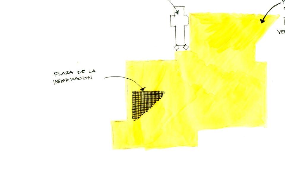 The monthly veneration of Saint Tadeo at San Hipolito Church brings large crowds that spill into the intersection, blocking traffic and creating congestion. Meanwhile, Plaza de la Información, marked on the sketch, is an underutilized corner of the intersection often associated with activities like drug sales and pot smoking, reflecting the fragmented use of the surrounding spaces.