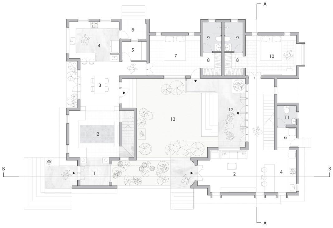 The village has a moderate-hot climate, with maximum radiation coming from the South and the West. The predominant wind direction is West. Therefore, the house was designed in such a way that the tallest part of the building is in the south which shades the courtyard, and the bedrooms. Fenestrations were placed carefully to make maximum use of the predominant wind direction. In the north, they were sized bigger to utilize the reflected sunlight with minimal radiation