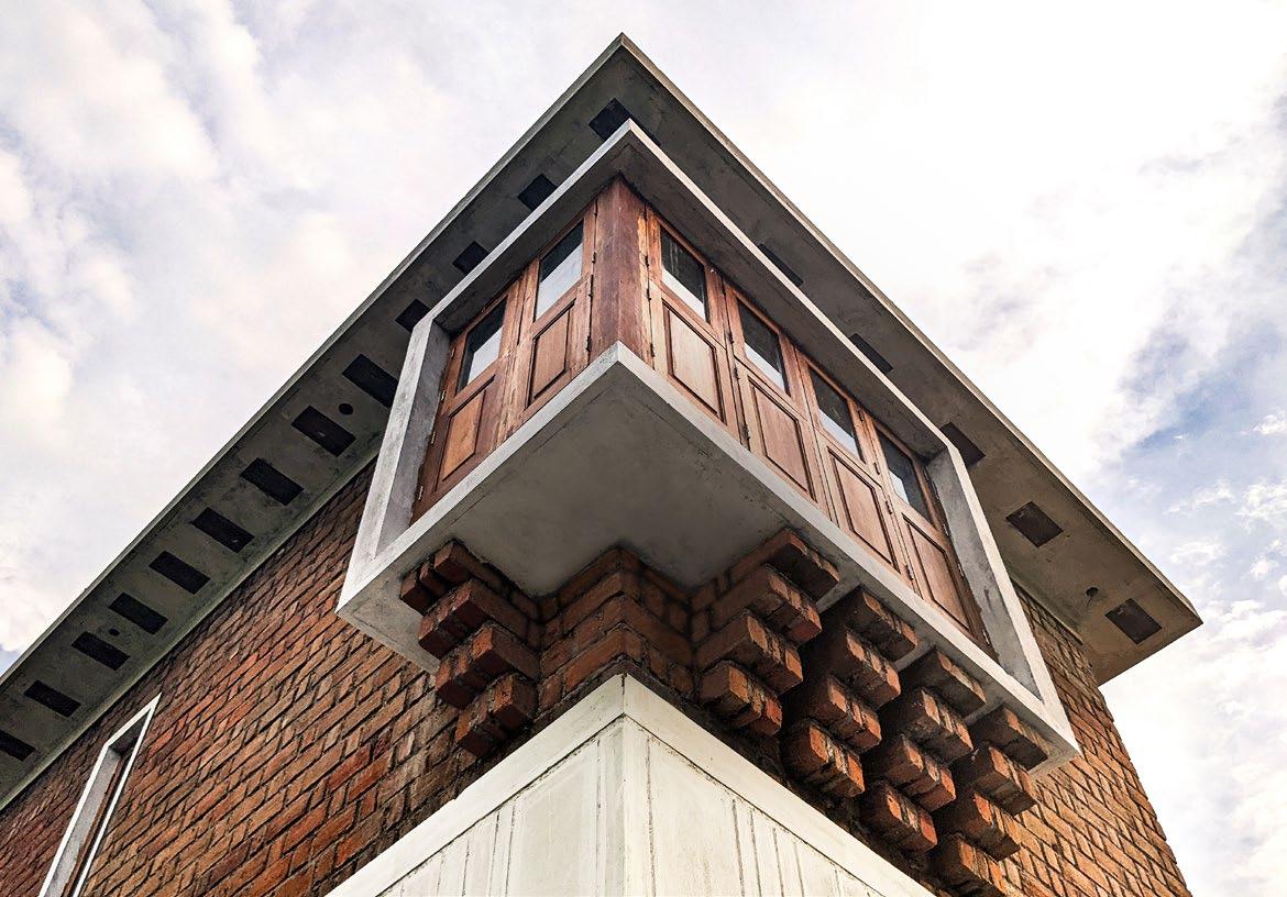 View from the South West side of the Residence showing different levels of roof slabs, Clerestory window and the Bay Windows of