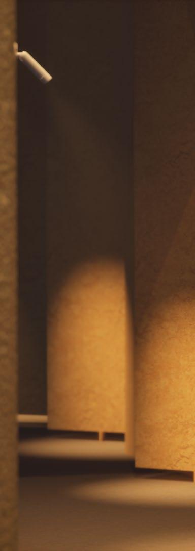 Screenshots from the cinematic walkthrough visualizing the interior of The Slow House. The sequence emphasizes slowness, scale, and mediated perception through light and movement.
