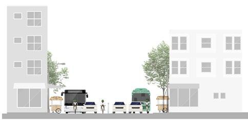 A modular system is introduced to organize mobile shops and informal vendors, offering flexible configurations for shelves, tables, and electrical access. This system aims to improve the trading capacity of the street, formalize existing activity, and create safer, more accessible public spaces for vendors and pedestrians.