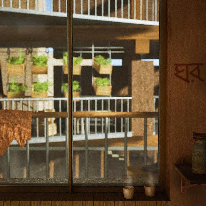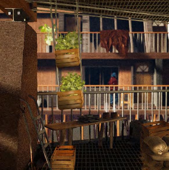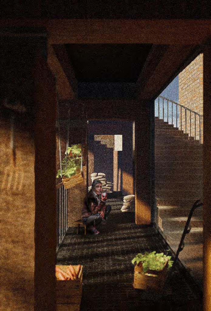 The project addresses housing and food insecurities faced by the Bangladeshi community on Commercial Road in East London. Through a community kitchen, vertical farm, social housing and self-built rammed earth construction, the project aims to repair local socio-economic and ecological disparities while empowering residents through community engagement and material localism.