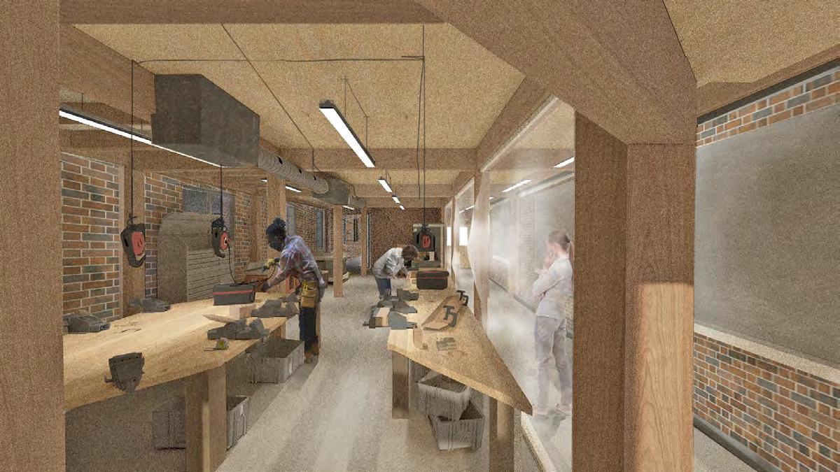 The resolved building design for the retrofill pursued by this project employs a prefabricated tectonic approach consisting of emerging mass timber and glass enveloping technologies. This allows the project to speculate on developing a kit of parts carbon tectonic that forms part of the retrofill programme. An architectural and material methodology that functions systematically across the industrial building stock framework to produce a growing network of these projects in a rapid, low-carbon manner.