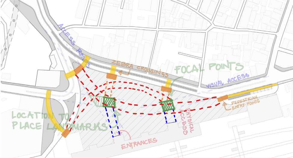 1. The Pedestrian connectivity between these nodes is not very pedestrian friendly and convenient for walking.