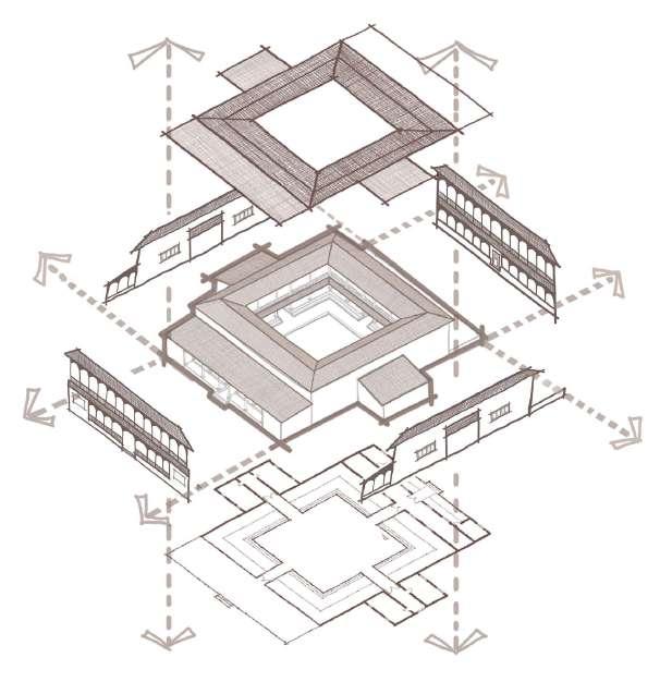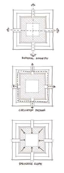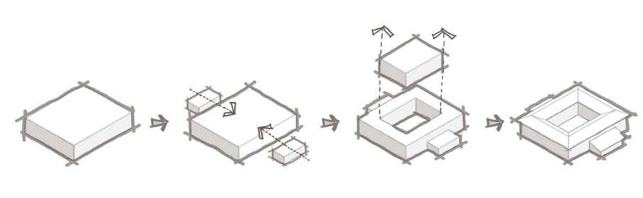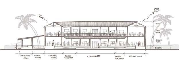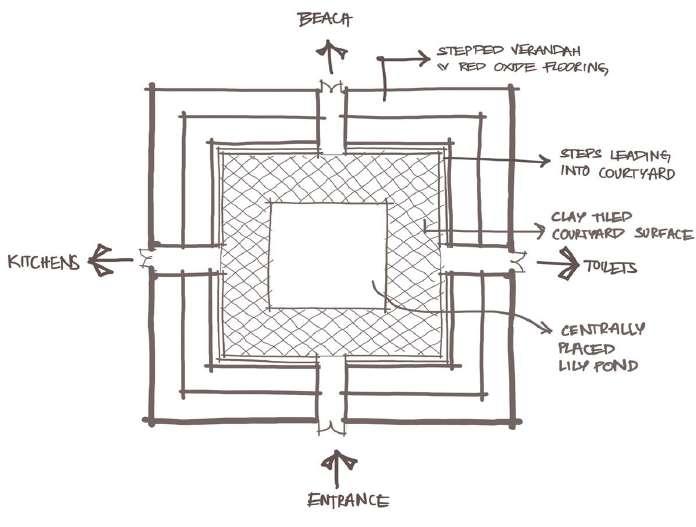 The old Mangaluru courtyard style is derived by subtracting a courtyard volume from the main mass.