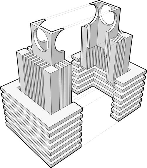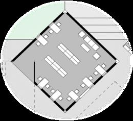 The form is based on a Rubik’s cube, with movable panels and an outer frame (each unit 2 x 2 x 2 m). Keeping it light, tectonic and dynamic in contrast to the bulky, predominant monument in front. The height of the design is purposefully limited to 4m so that the visual connection with the gateway is maintained.