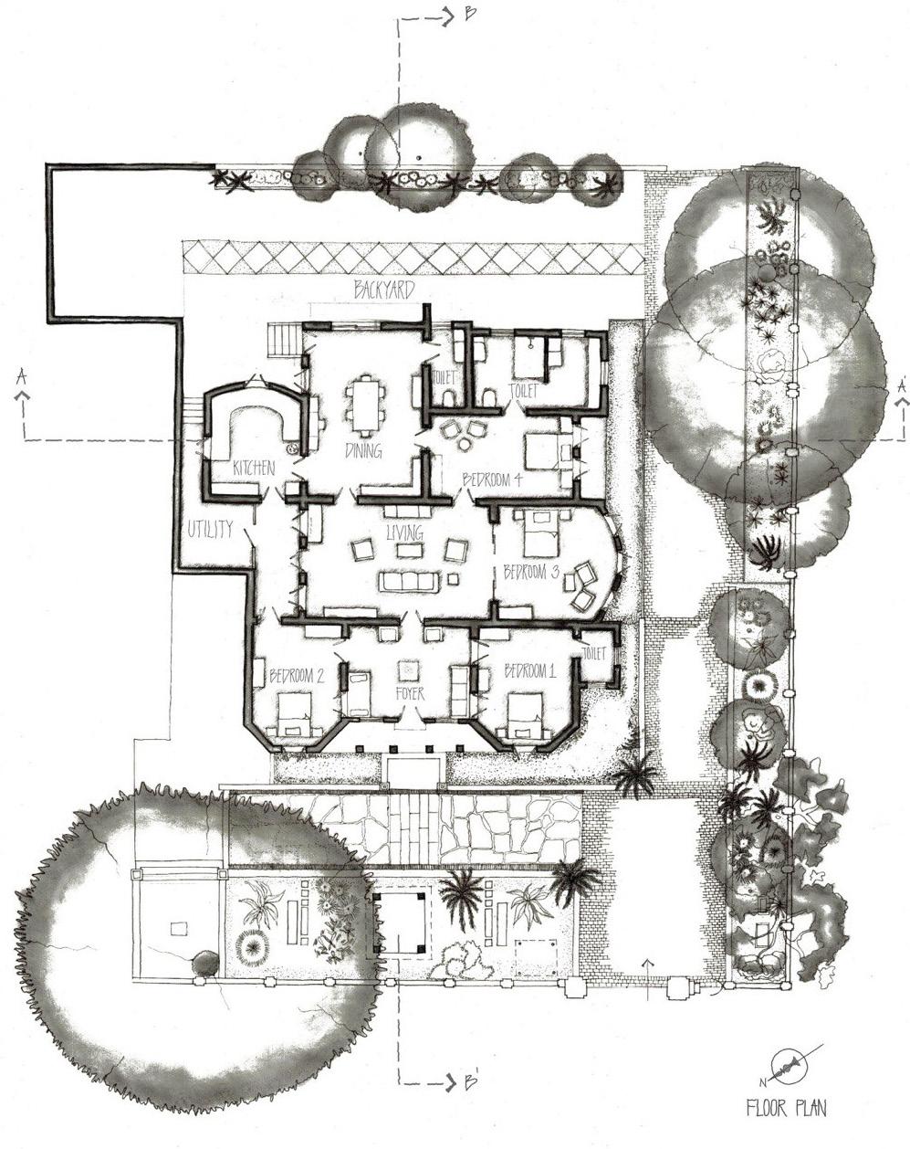 The selcted project is a hundred years old residential building owned by the ancestral royal family. It is a house in a site area about 100 square meter, in city center. The house contains four bedrooms with a living area, kitchen and a dining area. The house also has a dense garden in front with variety of plant species, out which is a huge Margosa tree, hence the house getting the name ‘MARGOSA HOUSE’.