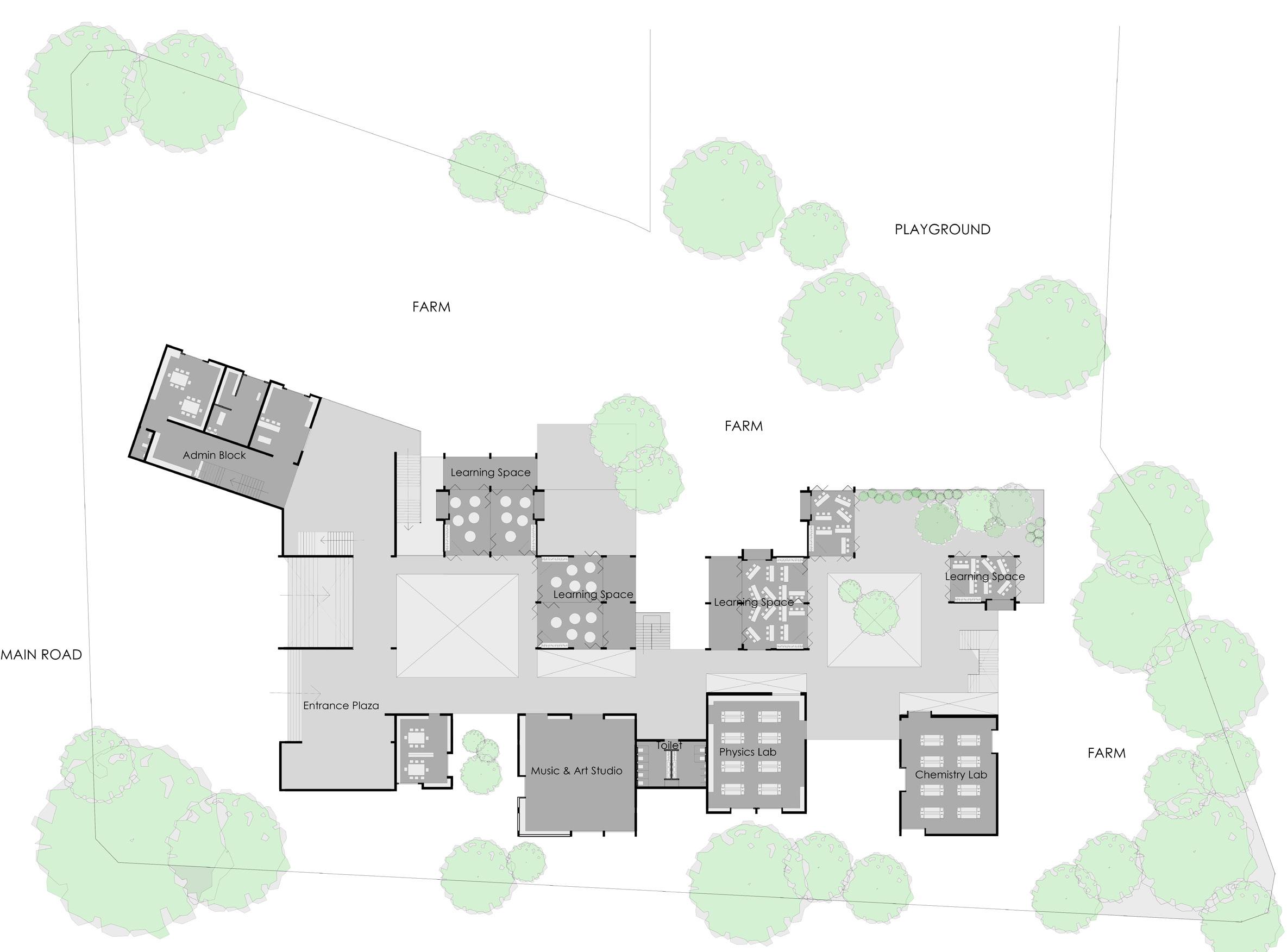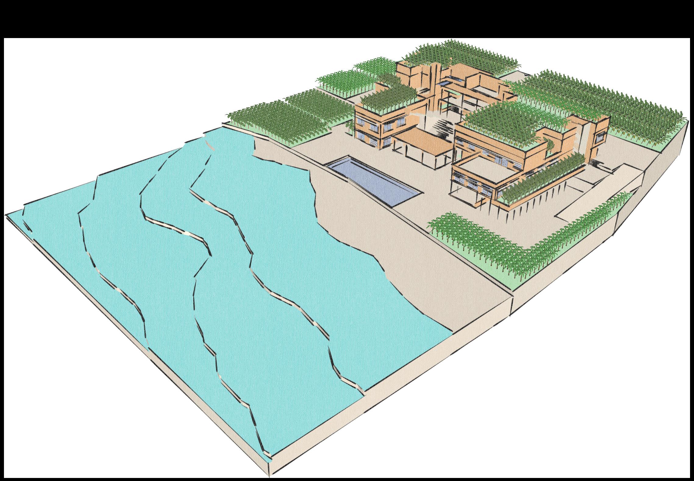 Sub Ground Ground First Floor Terrace Massing Diagram Built Sheltered Open to sky With Plantation Without Plantation - After Harvest