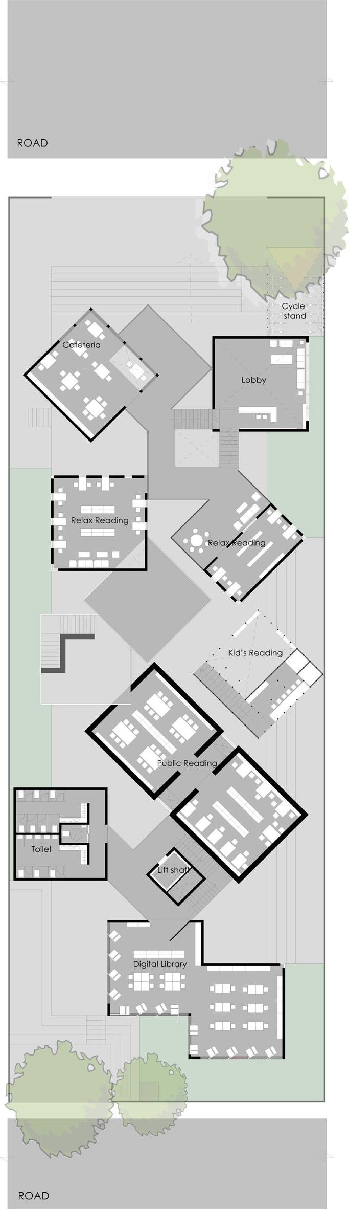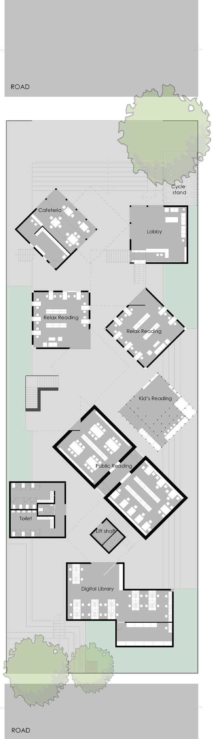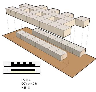 Break down the linear site with grid lines extended from the fascade for zoning