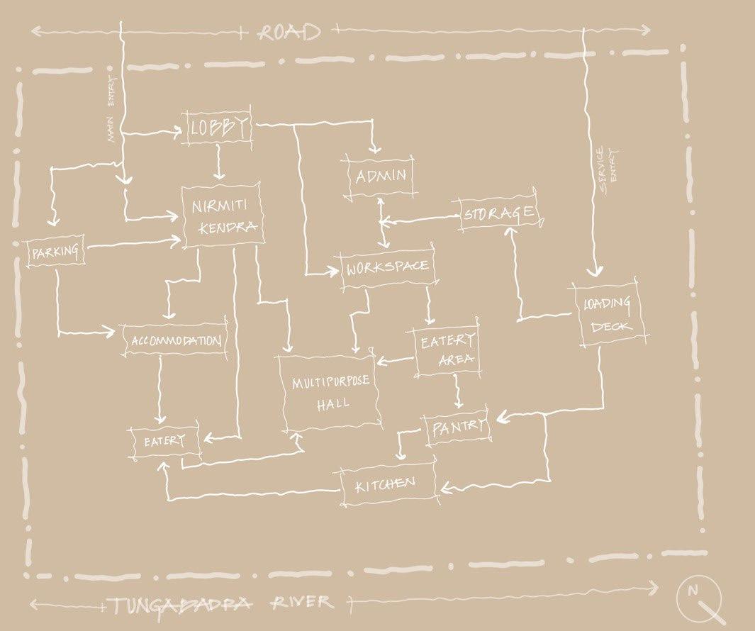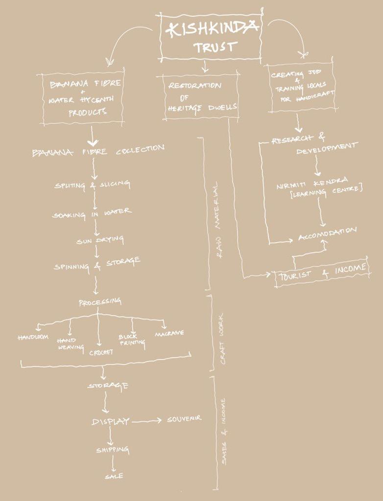 The present report is a collection of the work done by the 7th semester students of Wadiyar Centre For Architecture, on their visit to Anegundi. Since the semester focuses on ideas of sustainability, the intent was to look at small scale industries and their functionality in a rural context. As a reference study, the students were taken to The Kishkinda Trust, an NGO that focuses on women empowerment and other welfare activities in Anegundi.