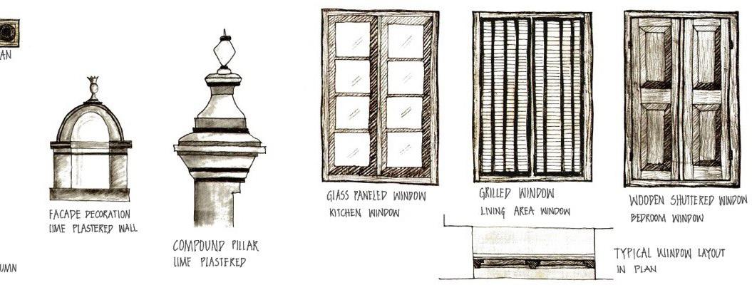 The architectural elements are captured in the drawings on site. Different drawing styles are also introduced, on order to improve the speed and technique of hand drawing.