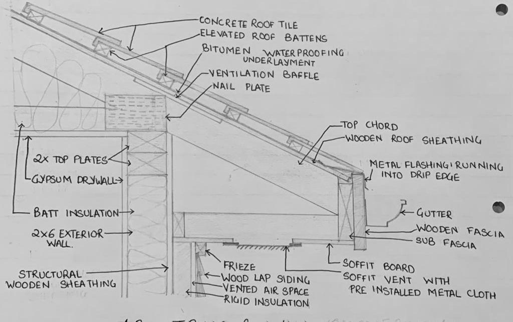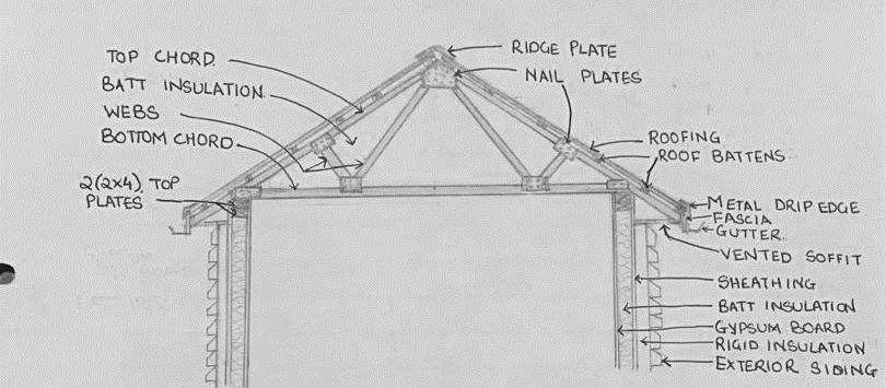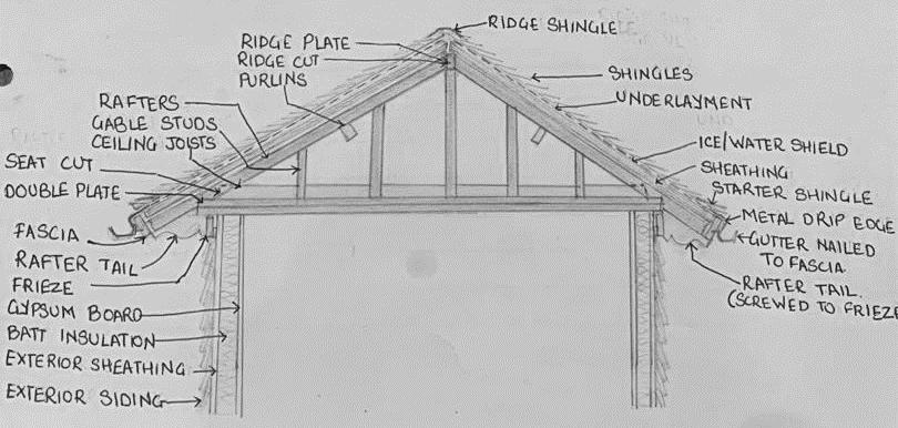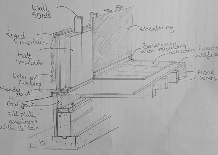 • Wood frame construction - sketches for wall, roof and floor assemblies