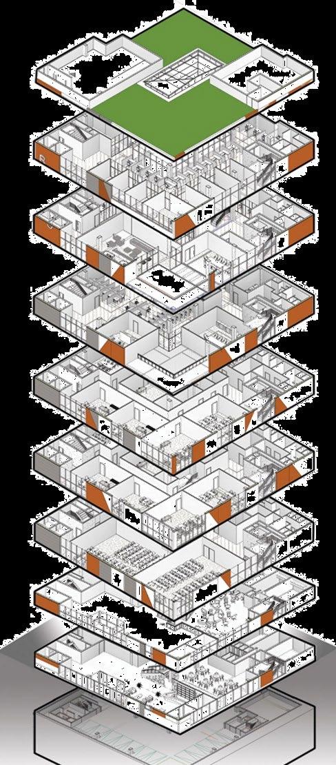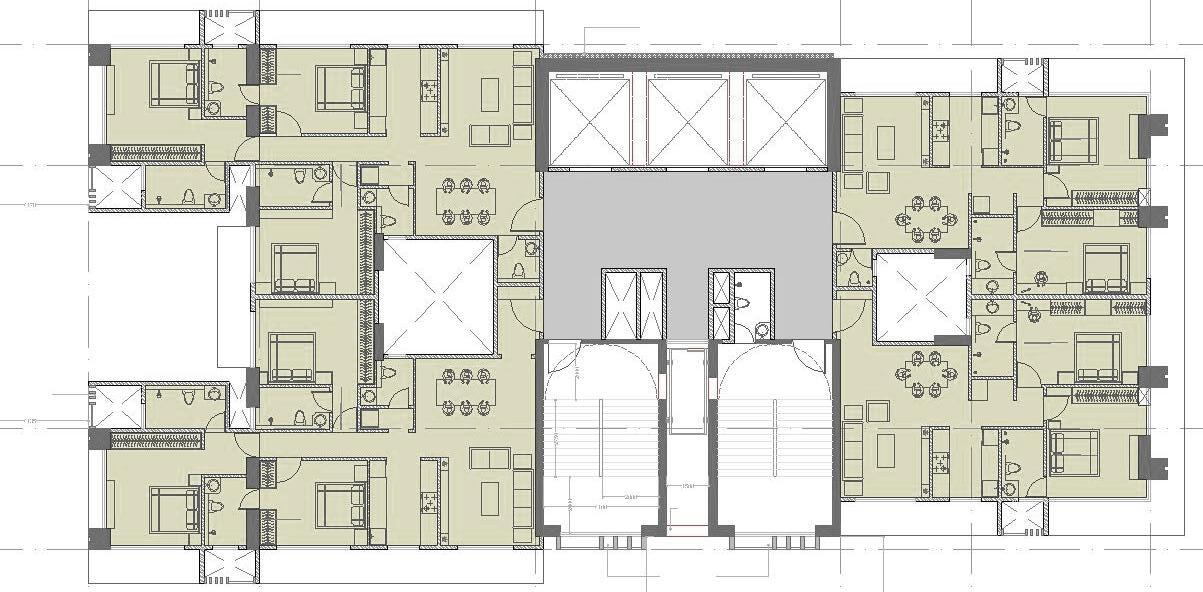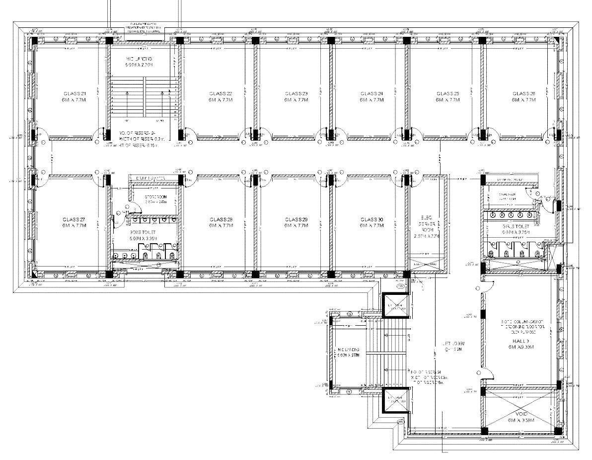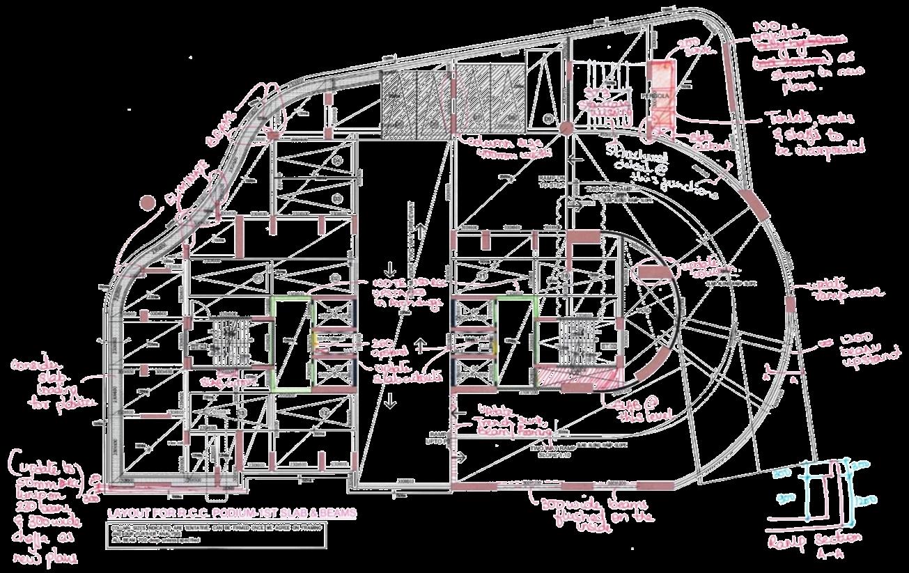 With eleven different layouts, the structure required two service floors to accommodate change of structure and heavy girders transferring the load to shifted and resized set of columns. Also, the service pipes were transferred on this floor from the ducts above to the due to change in size and location of ducts with change of typology of layouts.