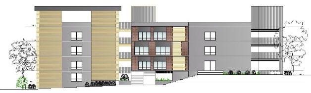 Schematic design with initial contemporary approach in brick and cement panel cladding –with elevation offsets and pergola roof encasing the structure
