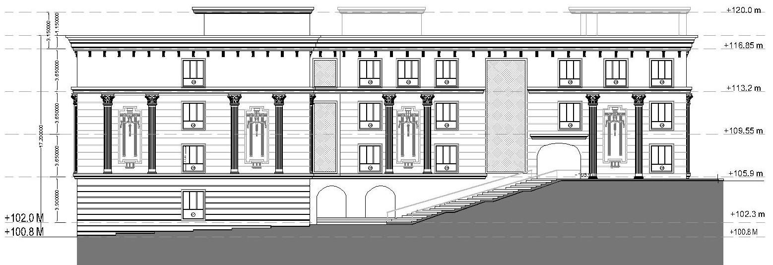Detailed drawings for classical elements given to Fiber reinforced plastic contractor North Elevation
