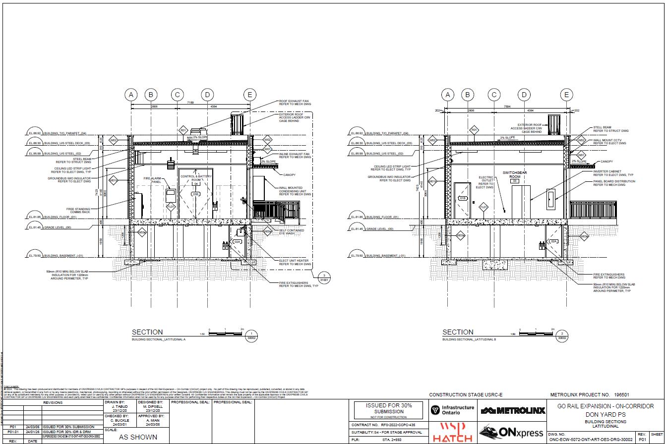 TPF are a series of sites with buildings housing high-voltage electrical units powering the track system. TPF includes traction power substations (TPSS), paralleling stations (PS), traction feeder facilities (TFF) and switching stations (SWS) buildings. The project sites are located along the Metrolinx rail corridors in multiple municipalities within GTHA.
