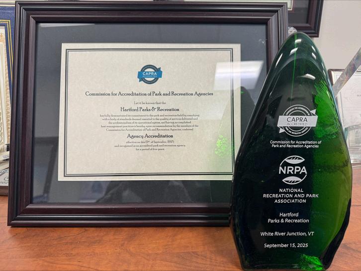 “Hartford Parks & Recreation is the only agency in Vermont that has achieved this national honorary distinction through the National Recreation and Park Association” said Hartford Parks & Recreation Director Scott Hausler. “Re-accreditation is a great achievement for our department and confirms our commitment to providing the highest level of park and recreation services to our community. Successfully completing the stringent review process is the mark of excellence that demonstrates Hartford Park & Recreation’s commitment to providing quality programs, parks and customer service,” he added.