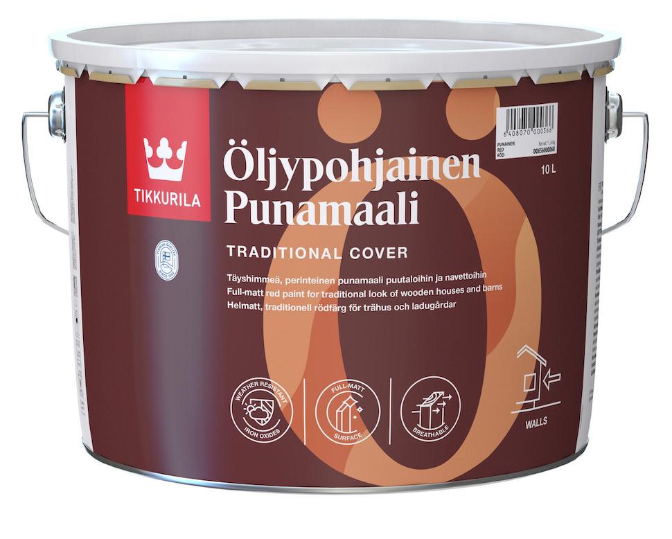 Perinteinen alkydimaali pihapiirin uusille ja aiemmin öljymaalilla maalatuille lautapinnoille/traditionell oljebaserad utomhusfärg (HC65), C (HC71) (8,87€/l)