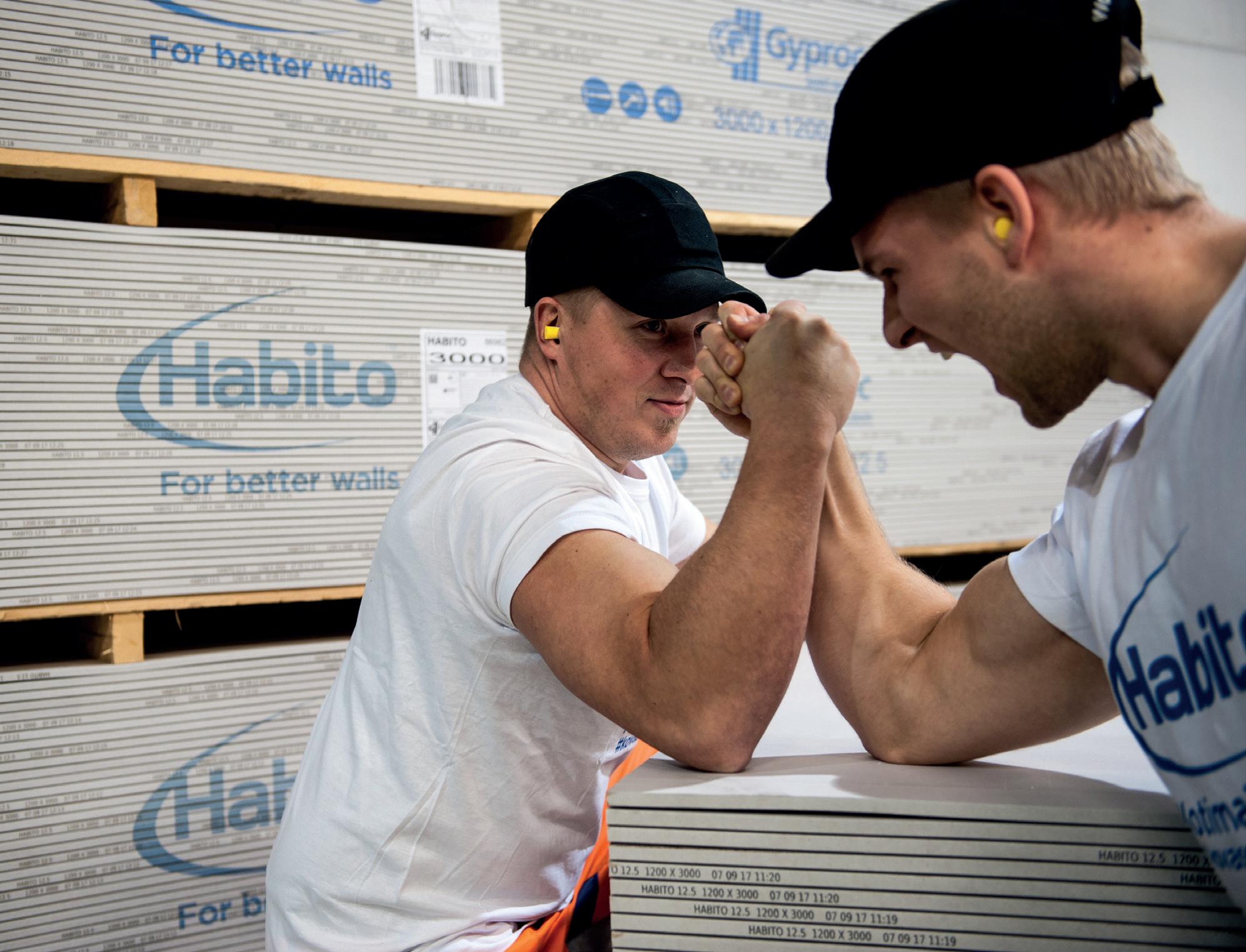 Gyproc Habito® on erityisen luja kartonkipintainen rakennuslevy, joka tarjoaa erinomaisen ripustuslujuuden ja iskunkestävyyden. Levy kestää yhden tavallisen puuruuvin varassa jopa 40 kg ripustuskuorman ja se on merkittävästi muita levytyyppejä lujempi. Habito®-levyllä on kipsikartonkilevyjen kaikkien aikojen paras jäykistyskapasiteetti ja levyn iskunkestävyys on jopa 10-kertainen tavallisiin kipsilevyihin verrattuna. Reunaohennettu ja vaaleapintainen levy on helppo saumata ja pinnoittaa. Habito® soveltuu käytettäväksi myös märkätiloissa rankajaolla k600. Levyllä on EPD-ympäristöseloste, M1-sisäilmaluokitus ja CE-merkintä.