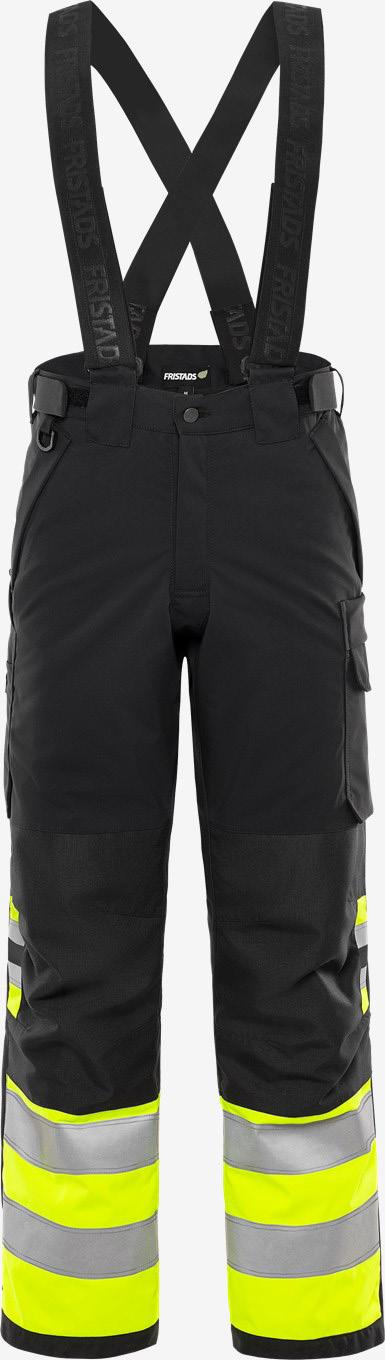 Pehmeät high-vis talvihousut joustavasta kierrätetystä materiaalista./Mjuka highvis byxor av återvunnet material.