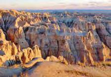 Almost a quarter million acres of eroded buttes, jagged peaks and sandy plateaus make Badlands National Park one of the most striking landscapes in the world. Sunsets and sunrises are especially beautiful times of the day, casting hues of pink, yellow and orange against the rock walls. Wild bison, coyotes, bighorn sheep and prairie dogs roam freely within the park’s borders.