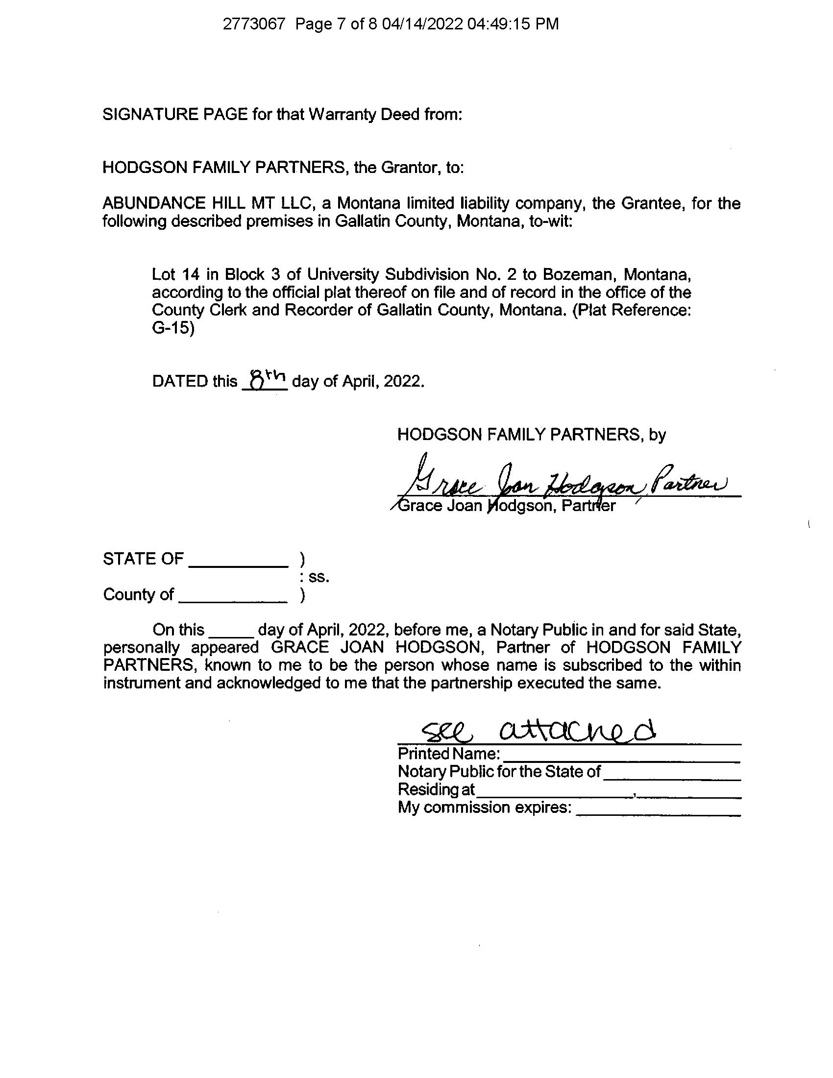 2022 Owner(s): ABUNDANCE HILL MT LLC
