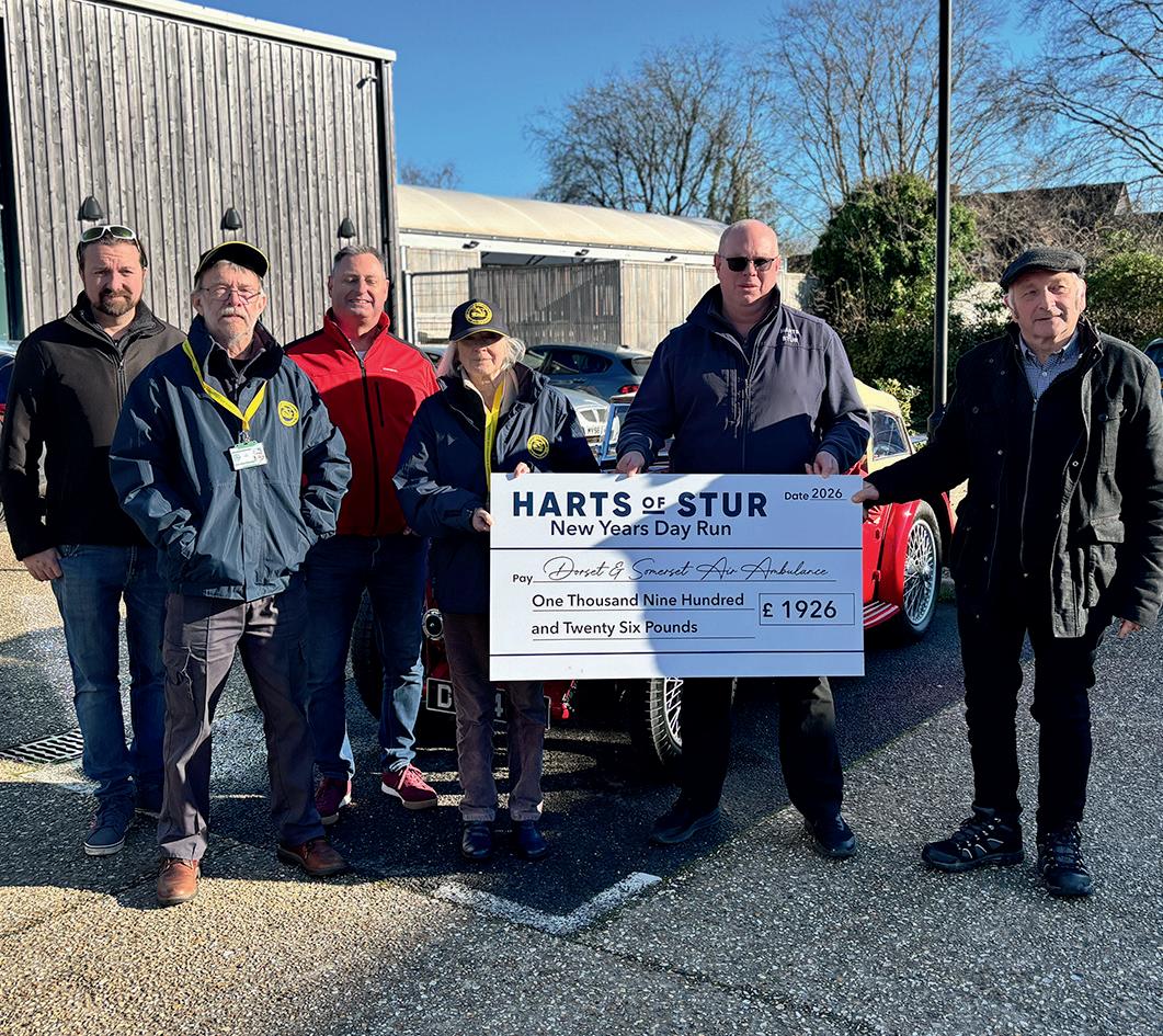 On a glorious sunny morning, representatives from the Somerset & Dorset Air Ambulance were presented with a cheque by Harts Commercial Director Johnathan Hart and event organiser Clive Dodson.