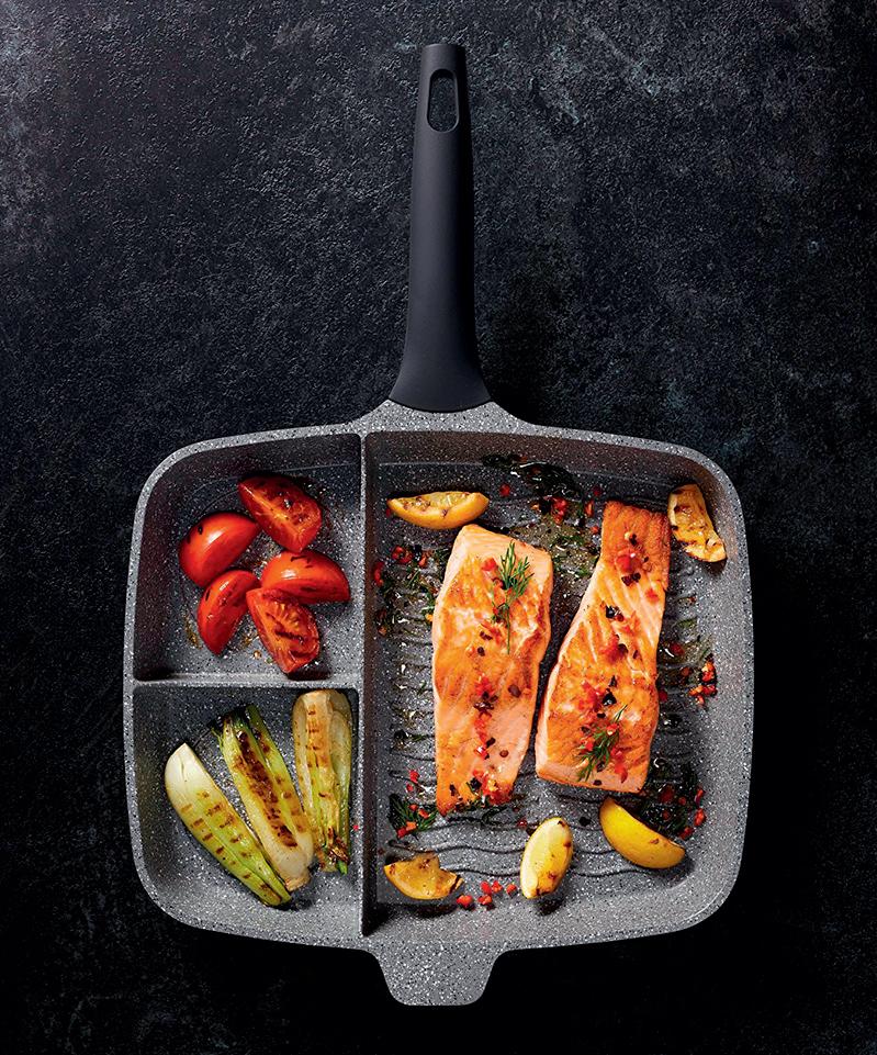 • Multi-ply construction with an aluminium core for fast heat conduction, reduced hot spots and excellent heat retention and responsiveness