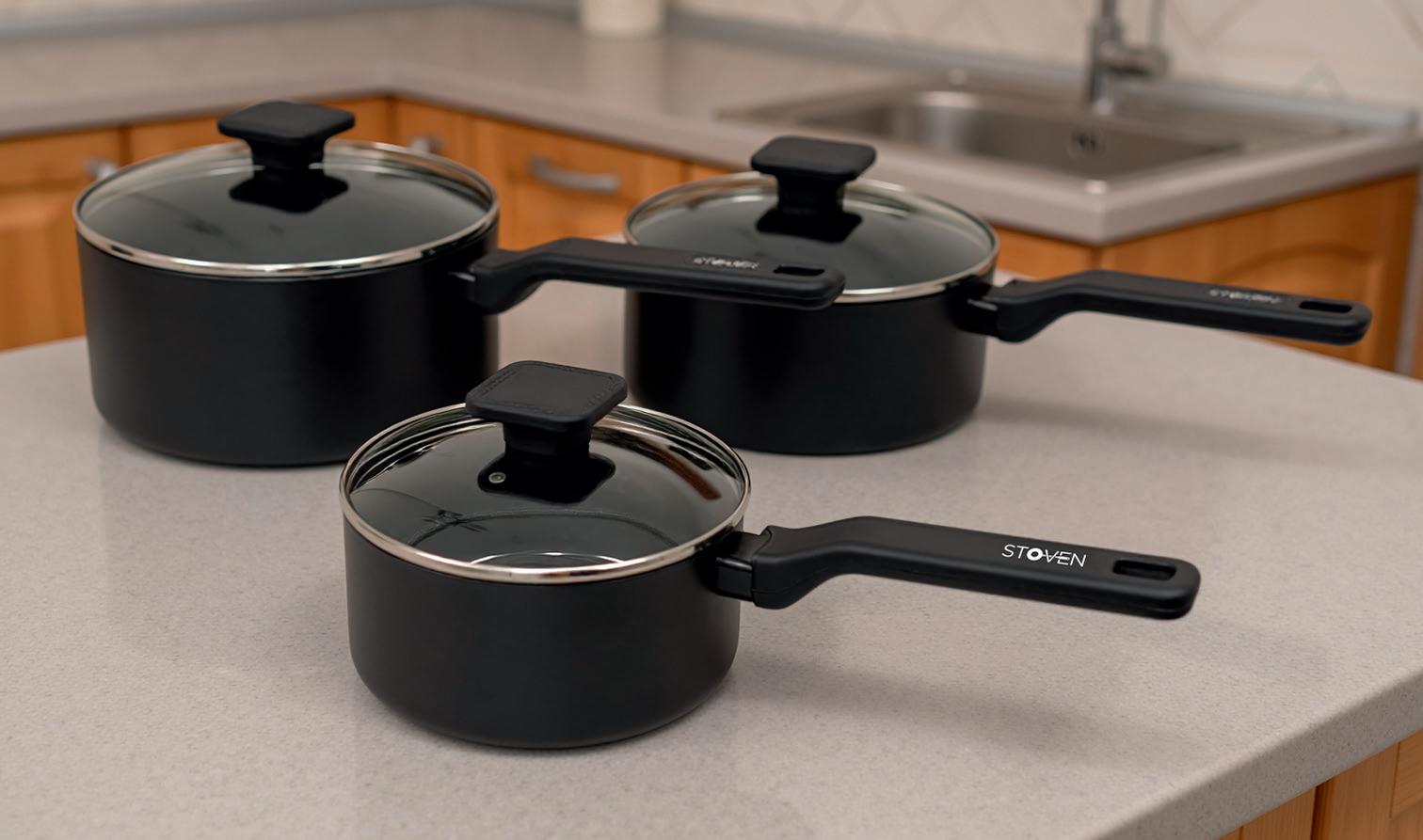 The Stoven Noir cookware range is a refined collection of milk pans, saucepans, and frying pans designed to combine traditional reliability with modern performance. Crafted from premium aluminium and finished with a PFAS-free, PFOAfree and PTFE-free ceramic non-stick coating, each piece delivers consistent heat distribution, practical handling, and dependable results for daily cooking. Whether preparing simple meals or family favourites.