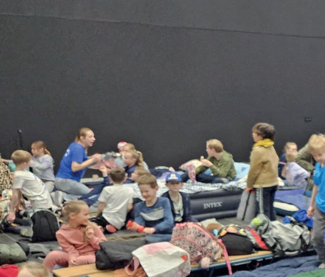 Rond 16.00 uur druppelden de eerste kinderen binnen, gewapend met luchtbedden, slaapzakken en natuurlijk een flinke dosis energie. Na het inrichten van hun slaapplek ging het programma van start met een actieve Smashbal-clinic. Onder begeleiding van trainers werkten de mini’s fanatiek aan hun techniek en teamspel. Na al dat bewegen was het tijd om aan te schuiven voor het avondeten: patat met een snack, wat er natuurlijk goed in ging. Vervolgens begon de spellentocht door het dorp. Op diverse plekken stonden spellen klaar zoals Twister, ‘Wie ben ik?’ en blikgooien. De kinderen genoten zichtbaar van het afwisselende en vrolijke programma.