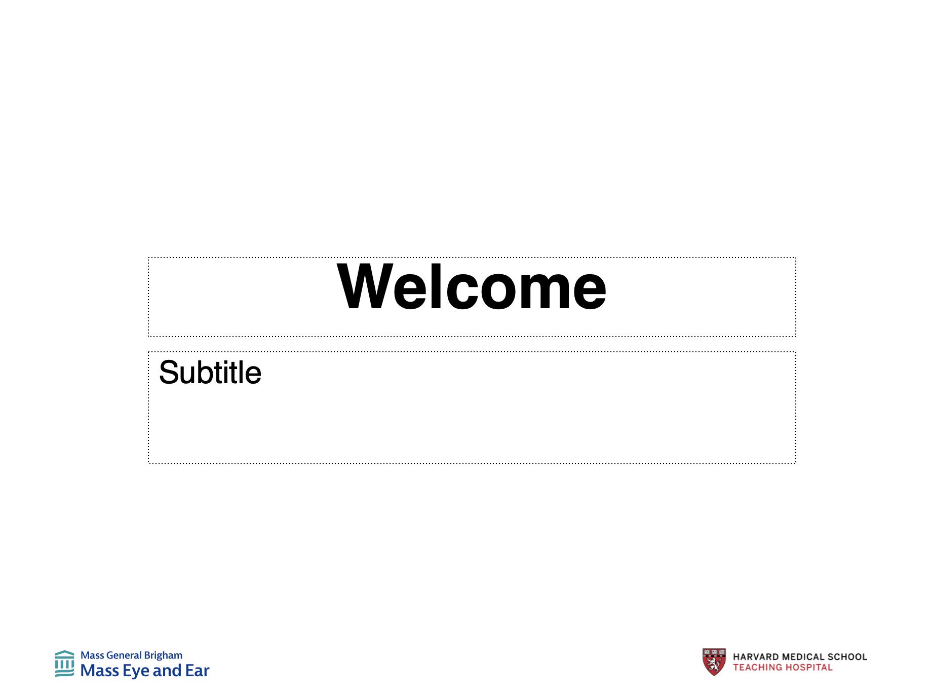 If the HMS affiliate or teaching hospital tag logo is displayed on the affiliate institution’s PowerPoint template, it should be scaled similarly to and substantially separate (e.g., opposite corner) from the affiliate institution’s logo. Please note that these templates should only be used by the affiliate institution’s employees when acting in their institutional roles, unless the template is being used to propose a financial relationship with a third party with which HMS has no involvement. In these cases, HMS branded templates should not be used.