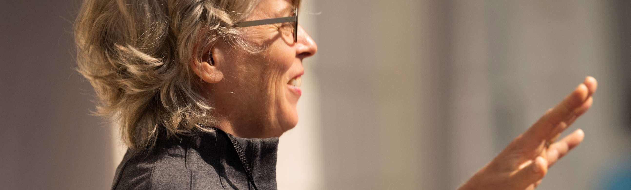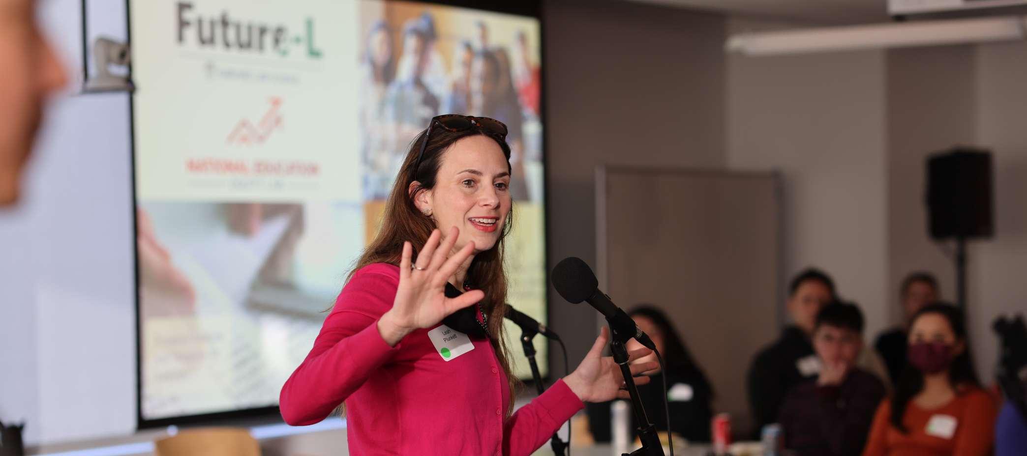 KarinaLin-Murphy,AssociateDirectorofCourseDesignand PedagogicalInnovationatHBS,speaksduringthebreakoutsession on“SmallMovesforBigTopics”