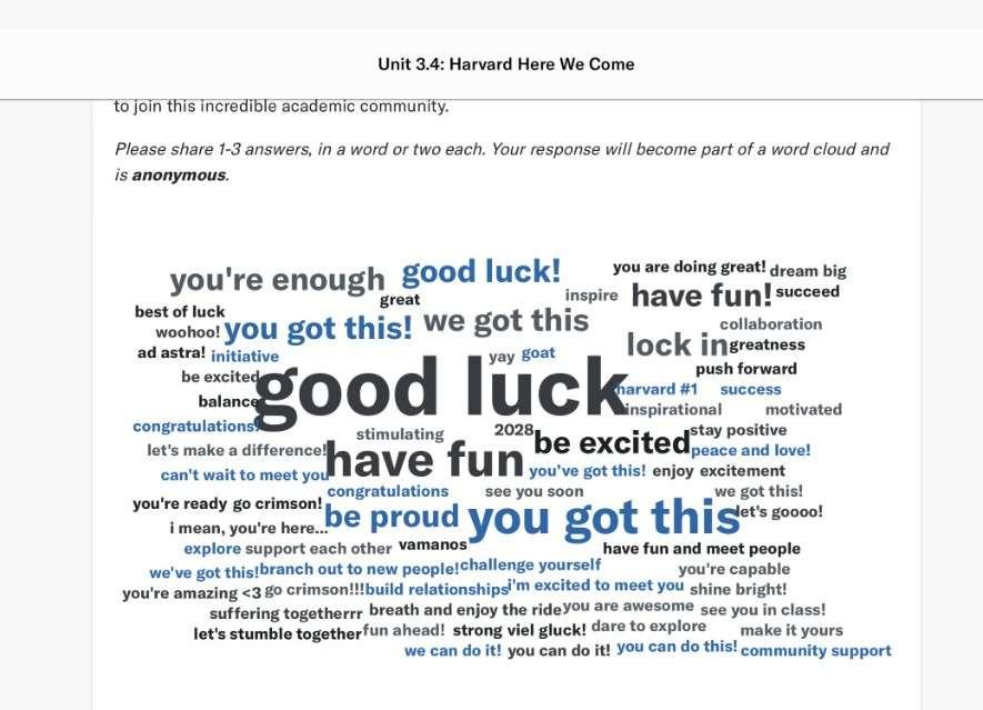 InSummer2024,allincomingfirst-yearHarvardCollegestudentscompletedtheSummer OrientationtoAcademicsatHarvard—athree-part,90-minutemoduleontheLXPdevelopedin collaborationwiththeOfficeofUndergraduateEducation.Thislearningexperiencewelcomed studentstoconsidertheirintellectuallifeatHarvardandpreparedthemtodiscussandselect courseswiththeiradvisors,andrepresentsthefirstcriticalintersectionbetweentheLXPand residentiallearningatHarvard.