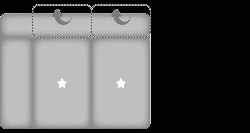 3-sjedsnamještanjemnaslona zaglavuifunkcijompoprečnog ležaja,bezrukonaslona,stražnja stranaodistogmaterijalamogućesamoukombinacijis četvrtastimkutom,kanapeom, izduženestoliceilikombiniranim elementom-