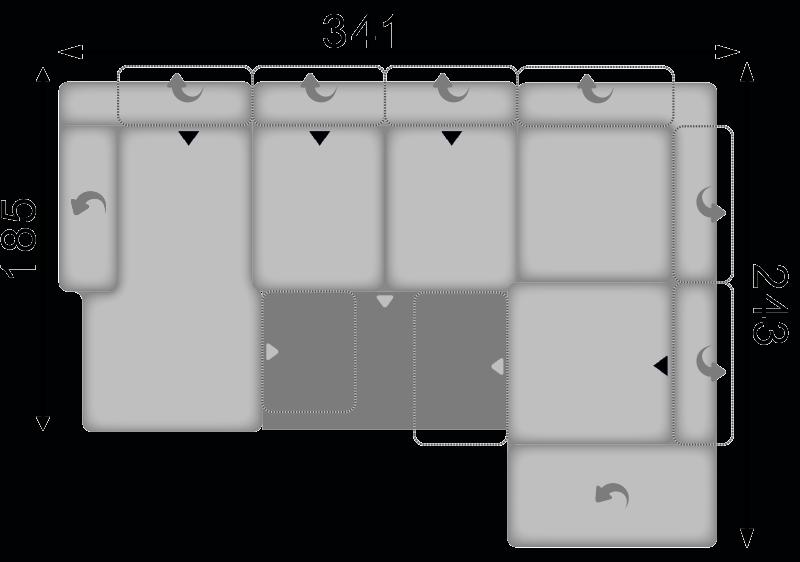 2,5-sjedsnamještanjemnaslona zaglavuifunkcijompoprečnog ležaja,rukonaslonlijevoilidesno, stražnjastranaodistog materijala-mogućesamou kombinacijisčetvrtastimkutom, kanapeom,izduženestoliceili kombiniranimelementom-