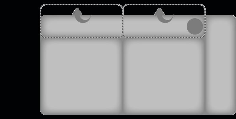 2,5-sjed snamještanjemnaslonazaglavu ifunkcijompoprečnogležaja, bezrukonaslona -mogućesamoukombinacijis četvrtastimkutom,kanapeomili kombiniranimelementima-