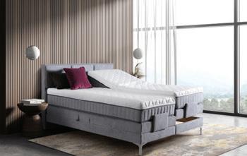 2.509 € Električni krevet PURE, 160x200cm, uzglavlje PURE, električna podnica TESLA, madrac PANNA, 5 zonska džepićasta jezgra, nadmadrac od HR pjene, noge NINA, materijal SERTA razne boje
