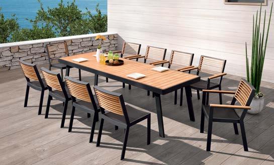 blagovaonski set NEW YORK, 11 komada Stol 260x90cm, 8x stolica bez rukonaslona, 2x stolica s rukonaslonima, aluminij/tikovina/tekstil