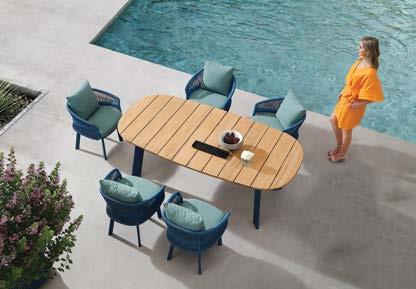 set OLIA, 7 komada, stol 220x110cm, 6x stolica s rukonaslonima, aluminij/tikovina/tekstil