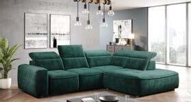 Kutna garnitura CARMELO L, 296x227 cm, ležaj 85x215 cm, lijeva ili desna strana, cijena vrijedi za materijal Salvador 11 (petrol zelena) i Salvador 8 (jantarna)