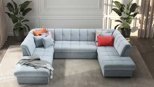 Kutna sjedeća garnitura RELAX XL 235x325x200cm, cijena vrijedi za materijal i boje Lapaz 108 siva i Lapaz 133 sv. plava, doplata za prostrani ležaj 120 € /