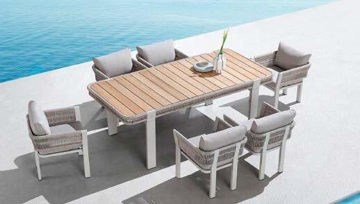 Set ROMEO, 7 komada stol 213x76x100cm, 6x stolica 61x63x61cm s jastucima, aluminij/tikovina/uže