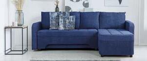 Kutna garnitura HANA II, 220x155cm, lijeva ili desna strana, ležaj 130x200cm, spremnik, cijena vrijedi za Mercury 111 tamno plava i Mercury 121 siva.
