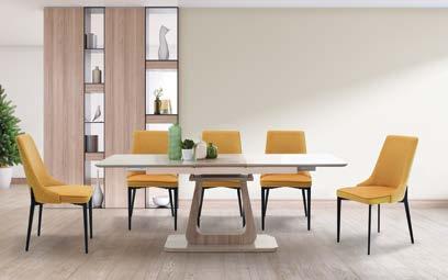 set: stol FONETIC, 160/200x90 cm, Wenge i Sonoma MDF/staklo + 4x stolica GUIDONIA, tkanina/metal, žuta ili siva boja