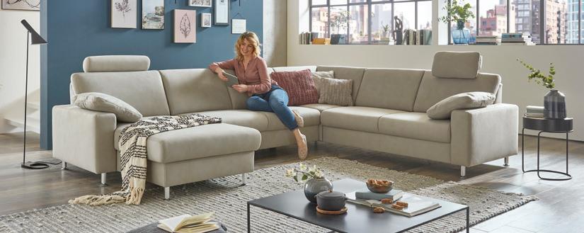 Kožna kutna garnitura PIAVE, 343x193cm, lijeva ili desna strana. Cijena vrijedi za 120.kategoriju kože s neobrađenim leđima i bez dodatnih funkcija. Veliki izbor materijala i dodatnih funkcija uz